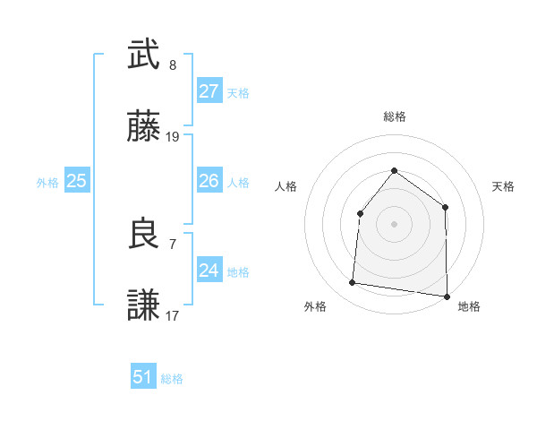 武藤 良謙さんを姓名の画数から五運を鑑定