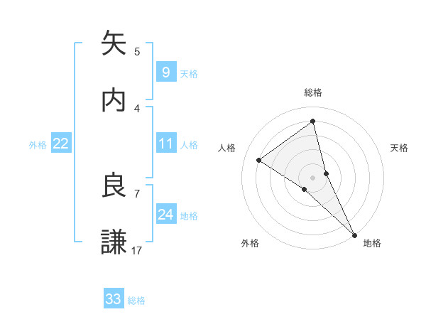 矢内 良謙さんの総格は33画の4点!