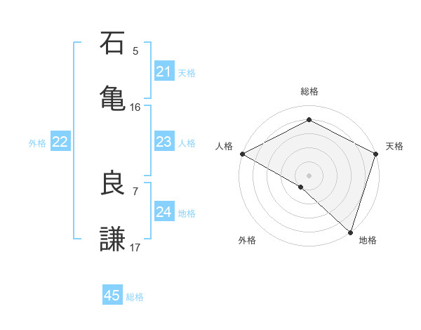 石亀 良謙さんの総格は45画の4点!