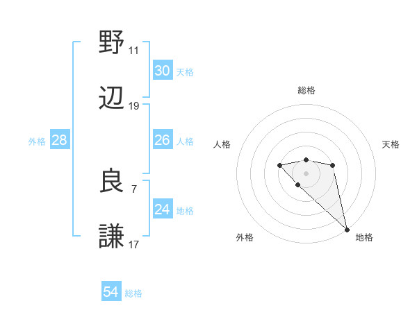 野辺 良謙さんを姓名の画数から五運を鑑定