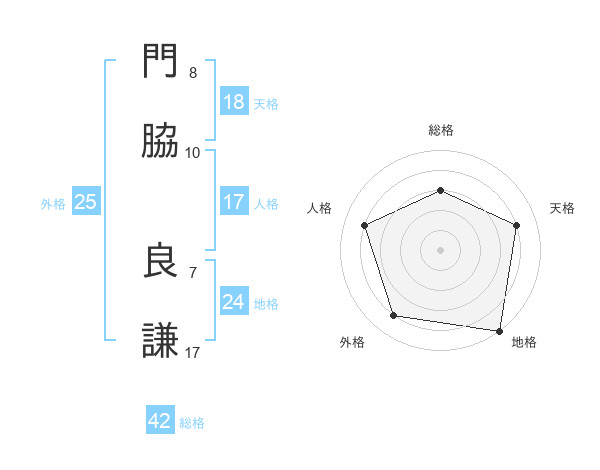 門脇 良謙さんの総格は42画の3点