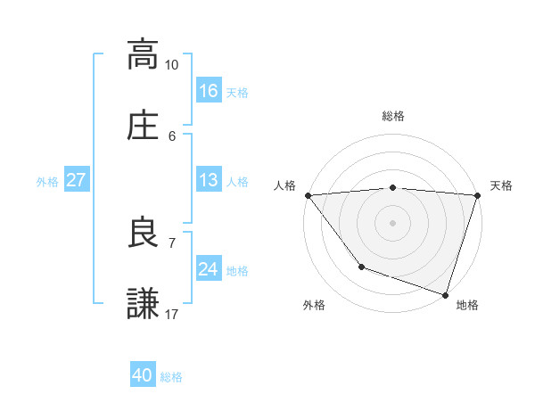 高庄 良謙さんの天格は16画の5点!