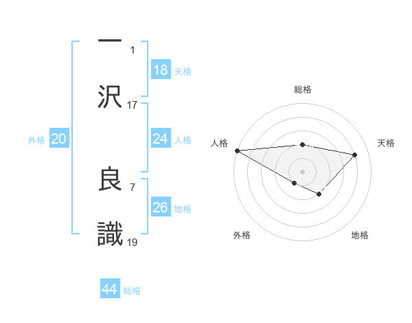 一沢 良識さんの総格は44画の2点!