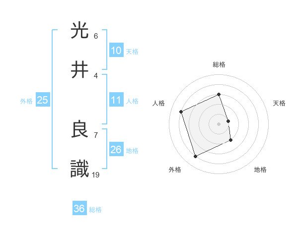 光井 良識さんの人格は11画の4点!