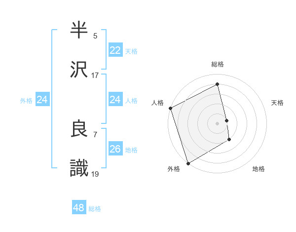 半沢 良識さんの総格は48画の4点!