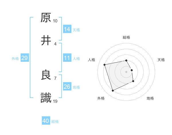 原井 良識さんの総格は40画の2点!