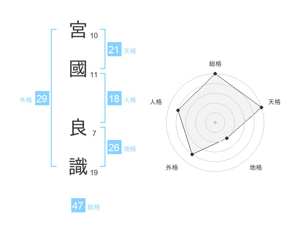 宮國 良識さんの総格は47画の5点!