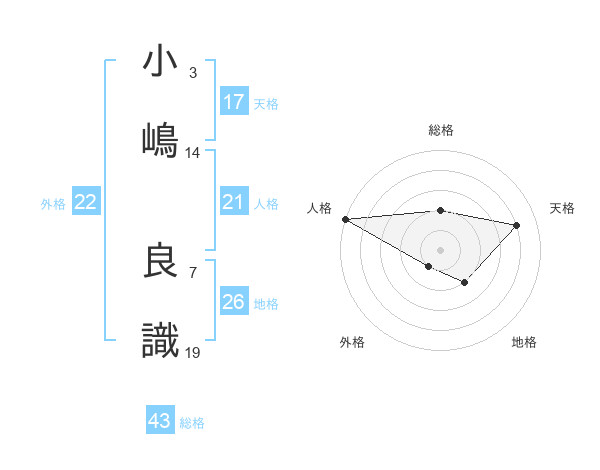 小嶋 良識さんを姓名の画数から五運を鑑定