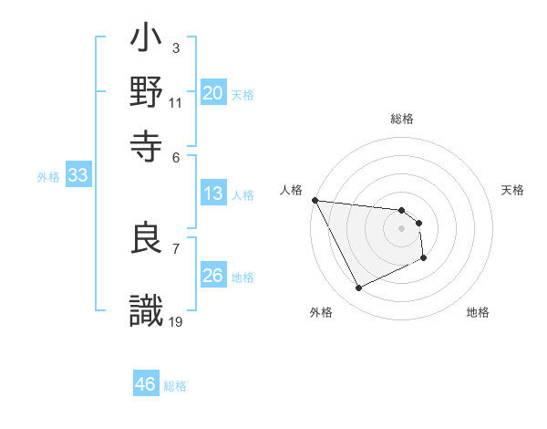 小野寺 良識さんの総格は46画の1点!
