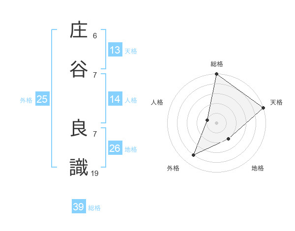 庄谷 良識さんの総格は39画の5点!