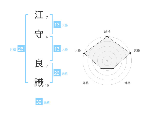 江守 良識さんの天格は13画の5点!