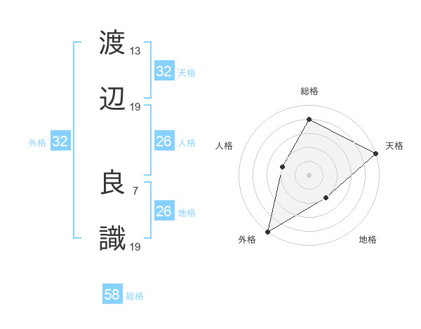 渡辺 良識さんの総格は58画の4点!