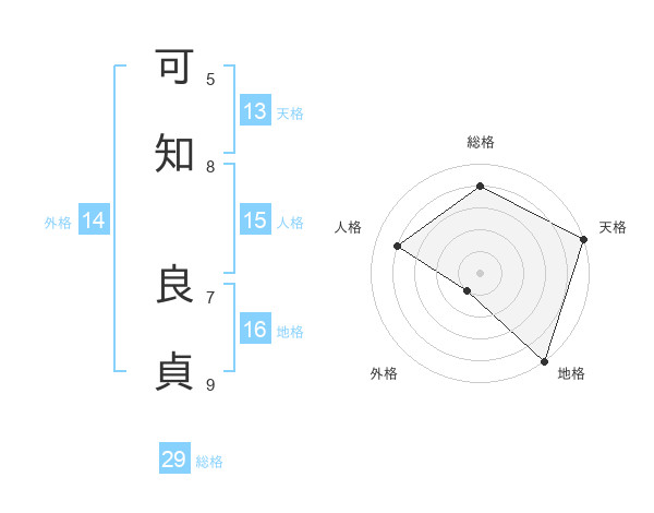 可知 良貞さんの総格は29画の4点!