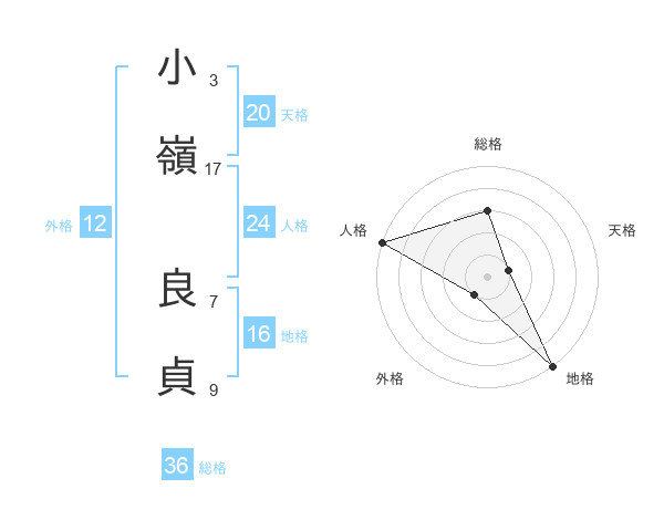 小嶺 良貞さんの外格は12画の1点!