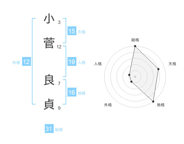 小菅 良貞さんを姓名の画数から五運を鑑定