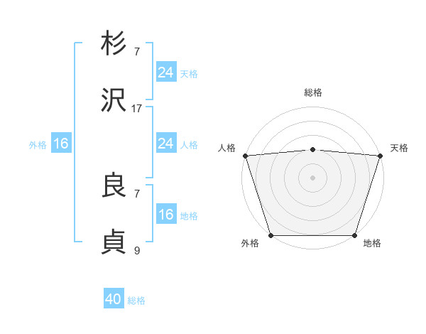 杉沢 良貞さんを姓名の画数から五運を鑑定