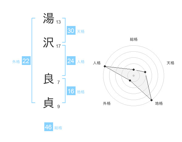 湯沢 良貞さんを姓名の画数から五運を鑑定