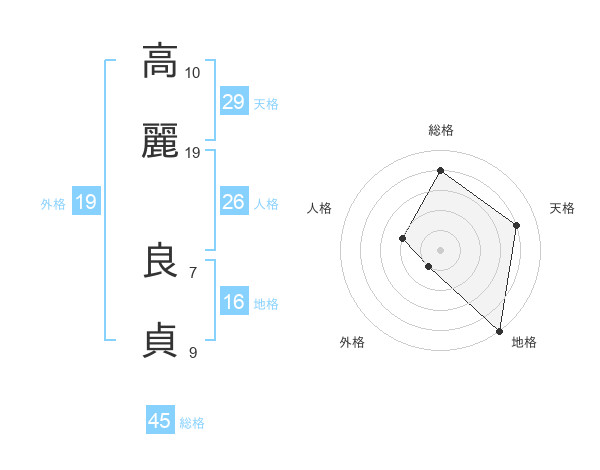 高麗 良貞さんを姓名の画数から五運を鑑定