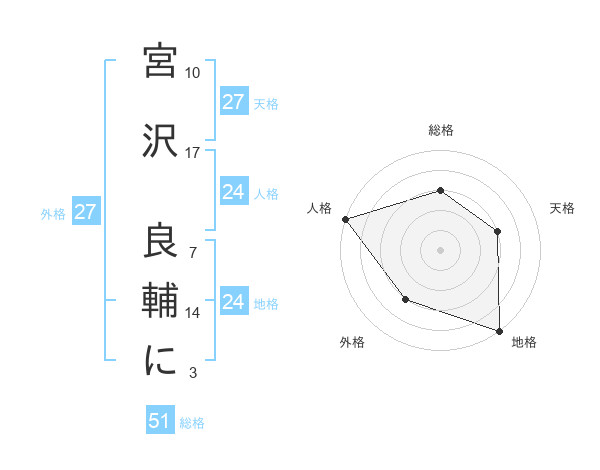 宮沢 良輔にさんを姓名の画数から五運を鑑定