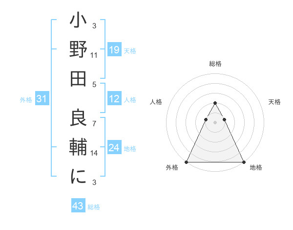 小野田 良輔にさんを姓名の画数から五運を鑑定