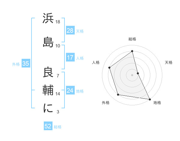 浜島 良輔にさんを姓名の画数から五運を鑑定