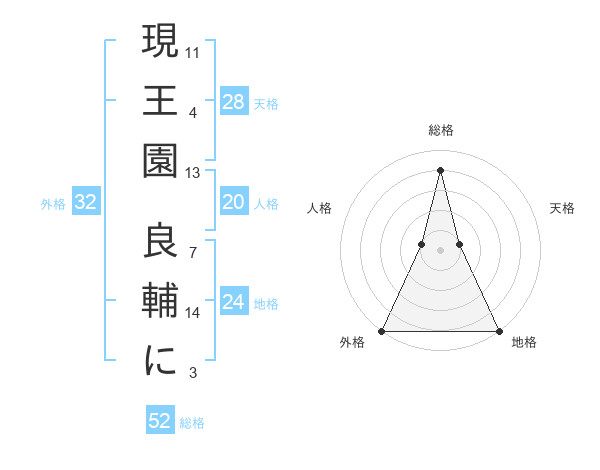 現王園 良輔にさんを姓名の画数から五運を鑑定