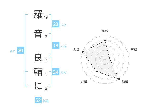 羅音 良輔にさんの総格は52画の4点!