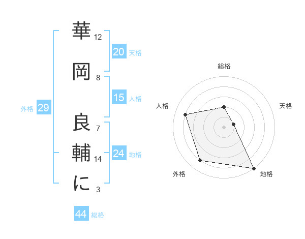華岡 良輔にさんを姓名の画数から五運を鑑定