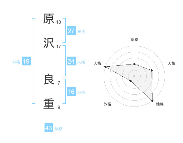 原沢 良重さんの総格は43画の2点!