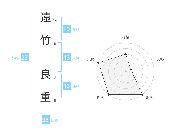 遠竹 良重さんを姓名の画数から五運を鑑定