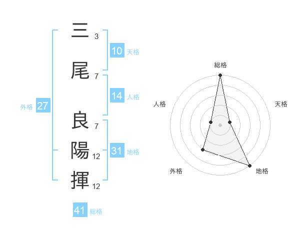 三尾 良陽揮さんを姓名の画数から五運を鑑定