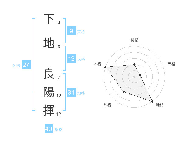 下地 良陽揮さんを姓名の画数から五運を鑑定