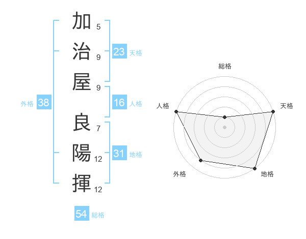加治屋 良陽揮さんを姓名の画数から五運を鑑定