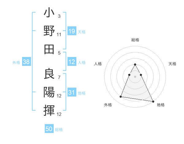 小野田 良陽揮さんを姓名の画数から五運を鑑定