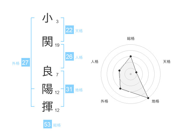 小関 良陽揮さんを姓名の画数から五運を鑑定