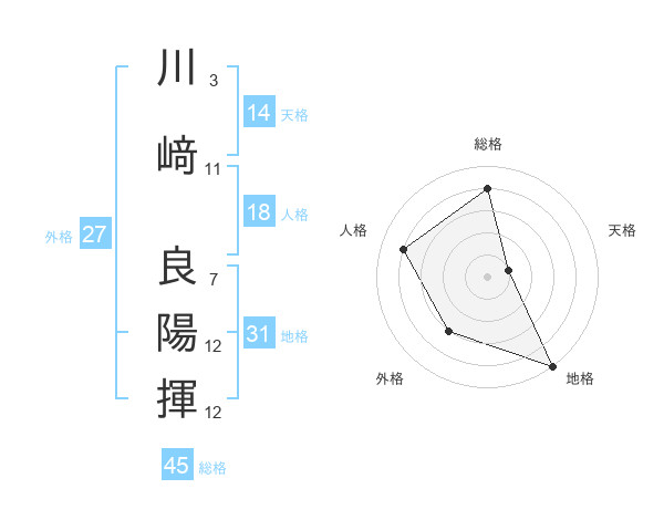 川﨑 良陽揮さんを姓名の画数から五運を鑑定