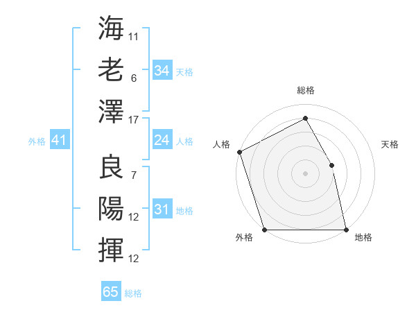 海老澤 良陽揮さんを姓名の画数から五運を鑑定