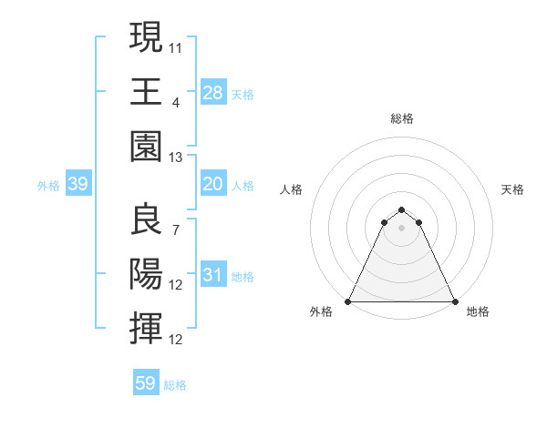 現王園 良陽揮さんの総格は59画の1点!