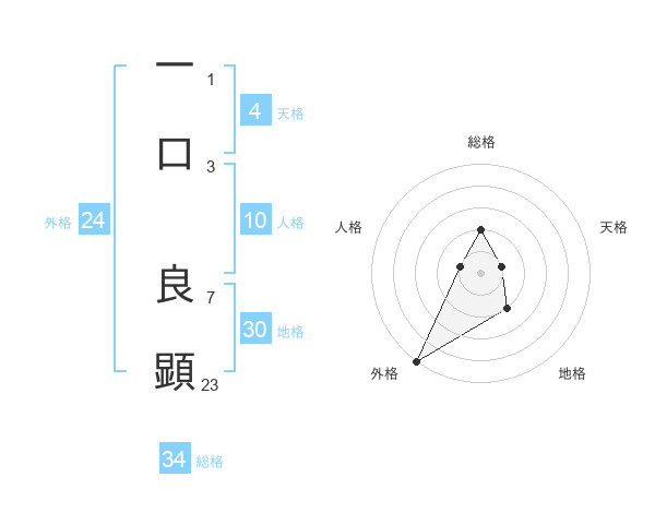 一口 良顕さんの総格は34画の2点!