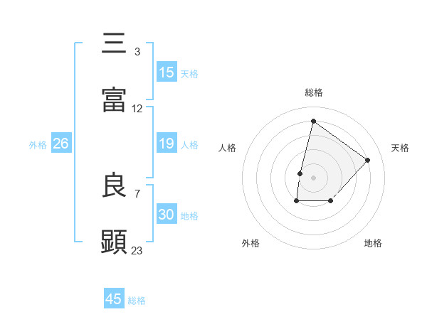 三富 良顕さんの総格は45画の4点!