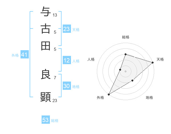 与古田 良顕さんを姓名の画数から五運を鑑定