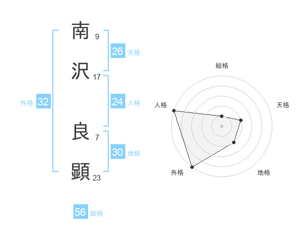 南沢 良顕さんの総格は56画の1点!