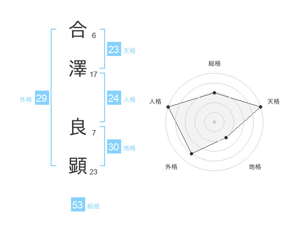 合澤 良顕さんの天格は23画の5点!