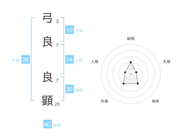 弓良 良顕さんを姓名の画数から五運を鑑定