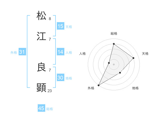 松江 良顕さんの総格は45画の4点!
