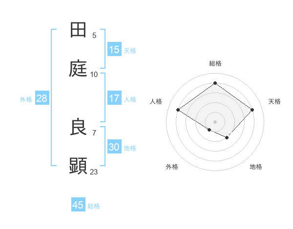 田庭 良顕さんの総格は45画の4点!