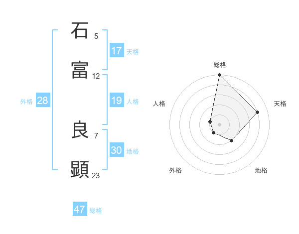 石富 良顕さんの総格は47画の5点!