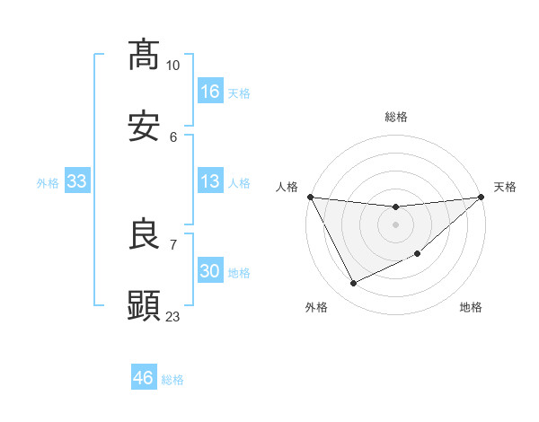 髙安 良顕さんの総格は46画の1点!
