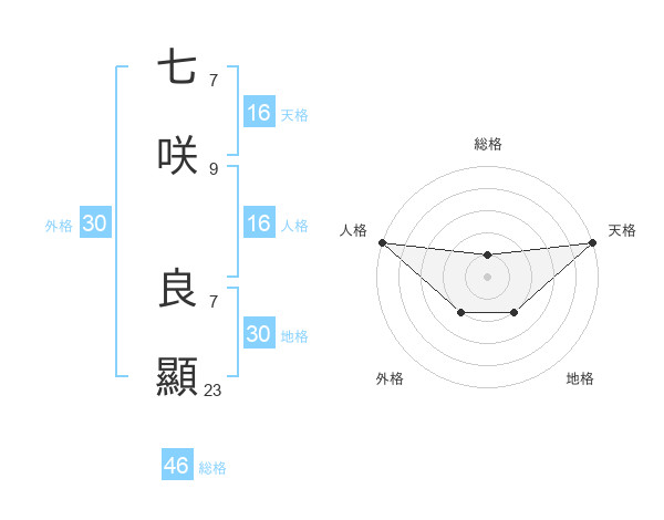 七咲 良顯さんの外格は30画の2点!