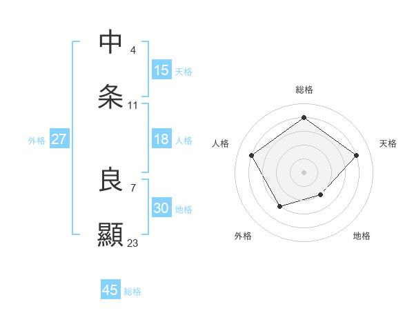 中条 良顯さんの総格は45画の4点!
